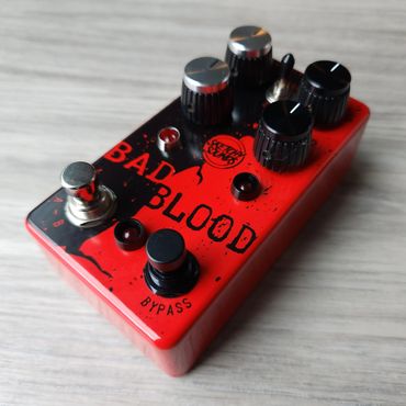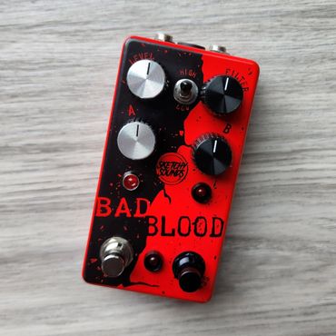 Bad Blood is our take on the Fulltone OCD* germanium overdrive circuit. It’s driven by two 2N7000 Mosfet transistors and two 1N34A Germanium diodes for an open, tube-like overdrive with a large dynamic range. We’ve also added two gain knobs for even more flexibility than the original. You can set one gain knob to a lighter overdrive and the 2nd gain knob to higher gain and switch between them with the A - B footswitch. We’ve also included LED indicators under each gain knob so you can easily tell which one is activated.