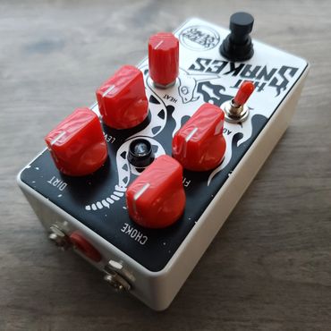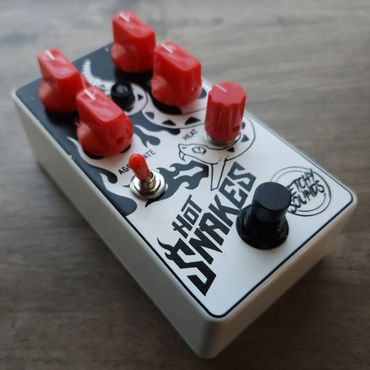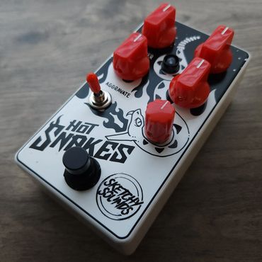 We love a good gated fuzz around here. The Hot Snakes is our clone of the OOP EQD Dirt Transmitter* with an added feedback loop. It’s true, we’ve found a way to have this thing get even dirtier than the original. Flip the Aggravate switch to feed the signal back into itself creating oscillating feedback. Have fun adjusting the knobs to shift the feedback pitch, or you can twist the volume knob on your guitar to achieve the same effect. Keep it hot and dirty with the Hot Snakes.