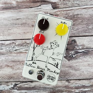 This is our Klone of the ridiculously popular Klon Centaur* overdrive circuit that's been cloned by many others. You can use this pedal as a clean boost, but we really like it as a medium gain overdrive. Don't think too much about why it's called an Outlaw Horse Monkey. They're probably not even real.
